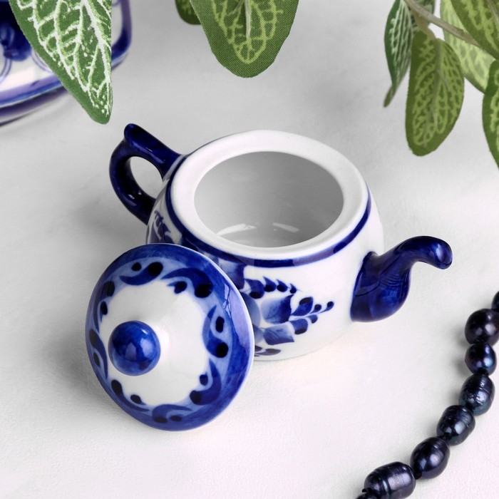 Изначально гжель была цветной, а в XVIII веке мастера начали использовать кобальт. Эта тёмно-серая краска становится ярко-синей в процессе обжига изделия.