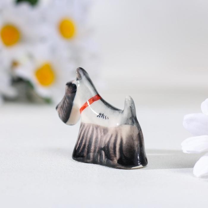Сувенир полистоун "Той-терьер в кепке и галстуке" синий с оранжевым 29,5х14х11,5 см