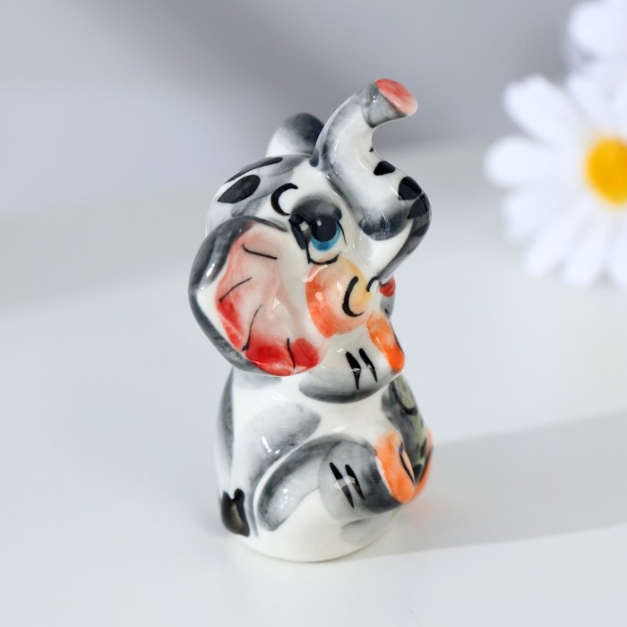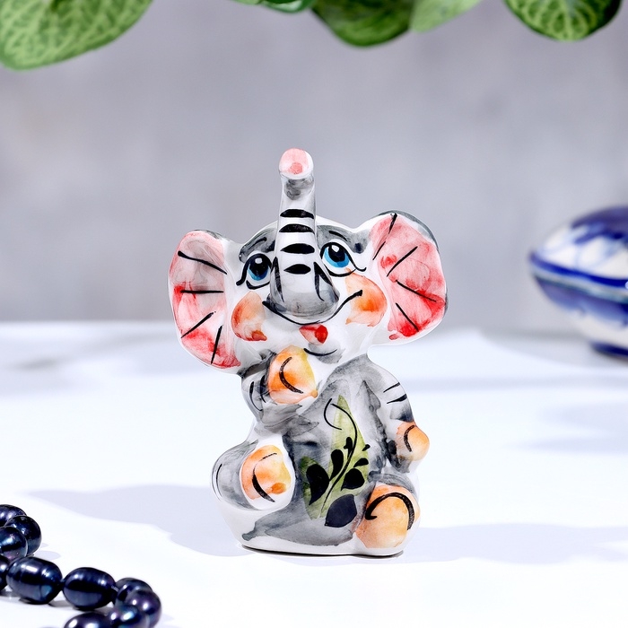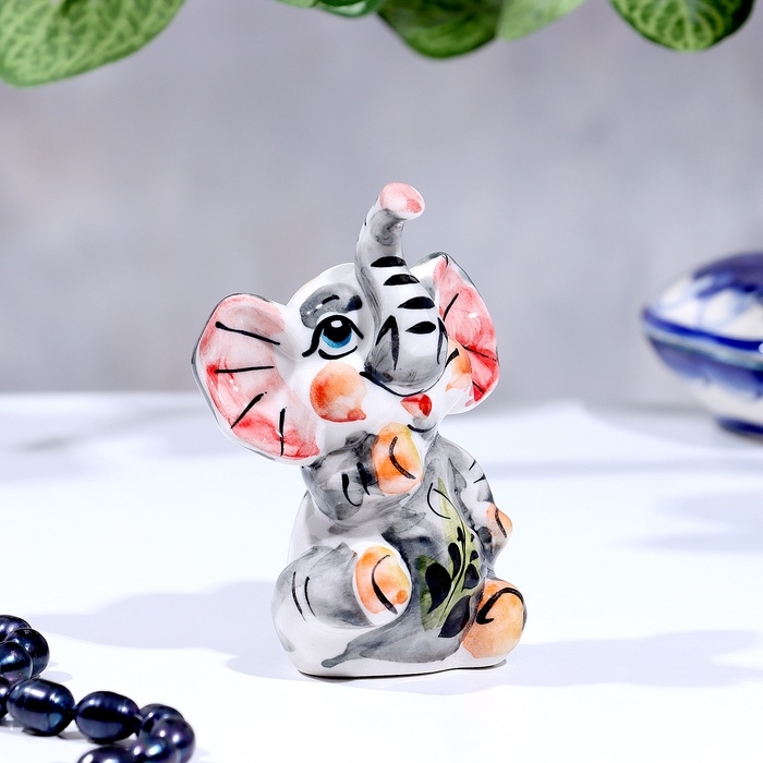 Сувенир «Слон Ксюша», фарфор, гжель, цветной