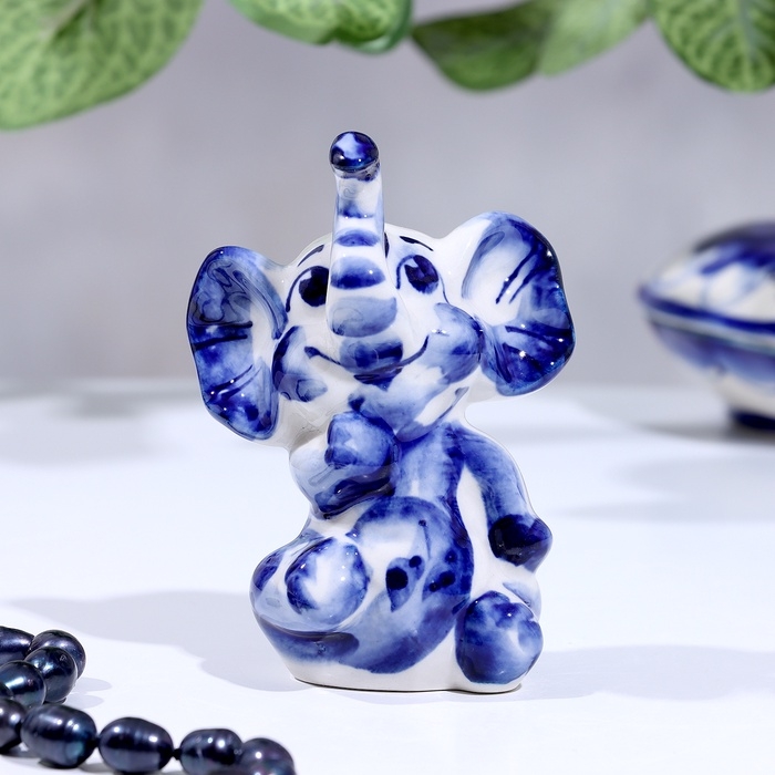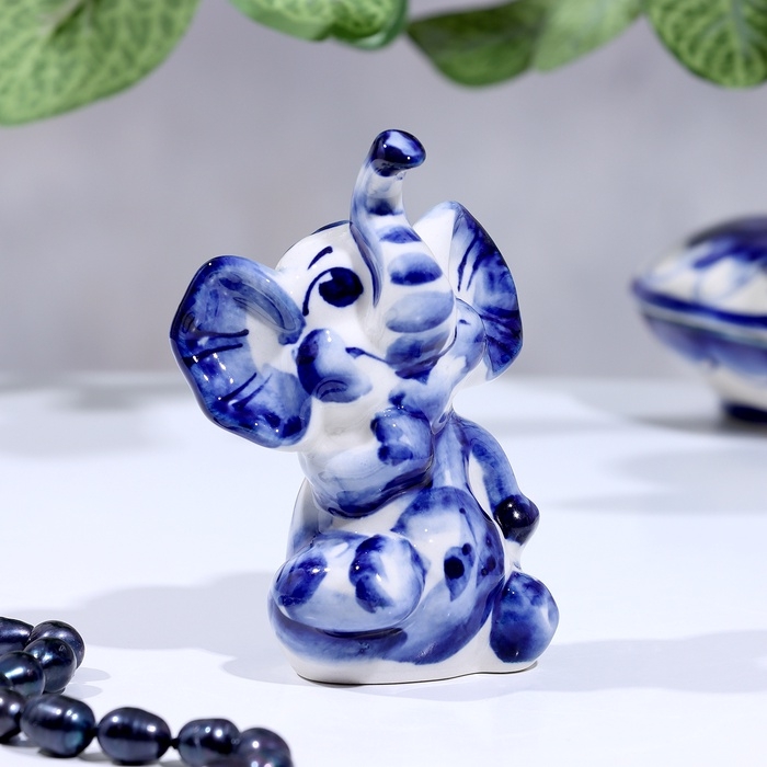 Сувенир «Слон Ксюша», фарфор, гжель, кобальт