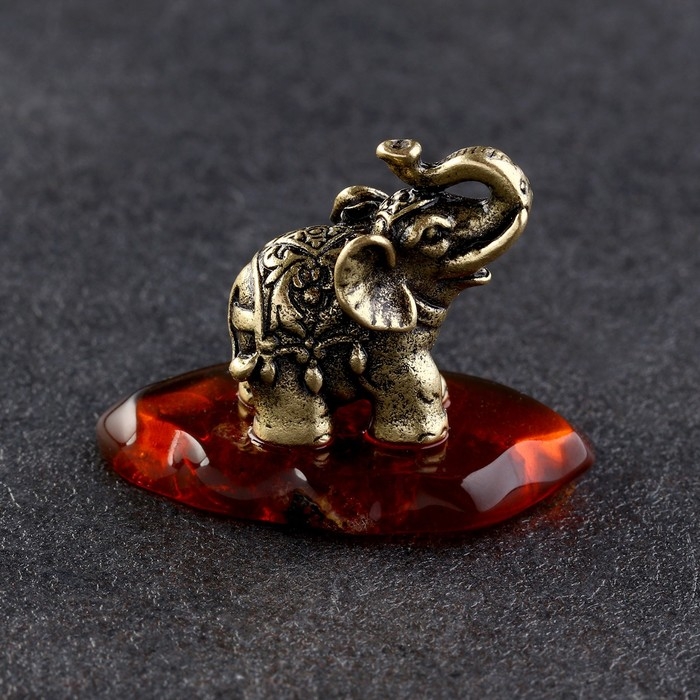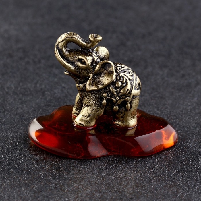 Сувенир "Слон Тайский", латунь, янтарь
