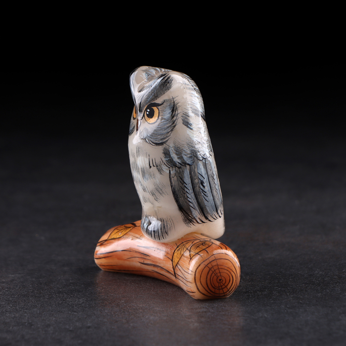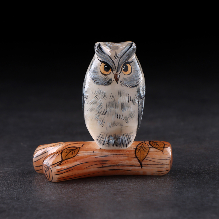 Сувенир «Сова на бревне». 8×3,5×7,5 см, селенит