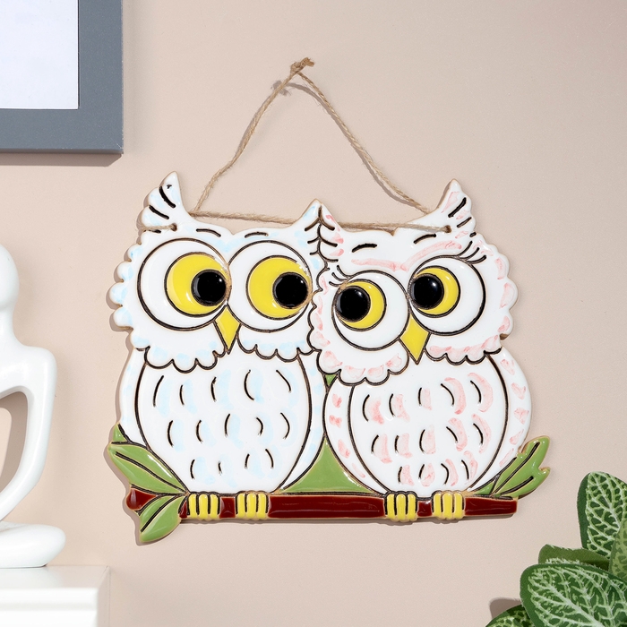 Сувенир "Совы", 16х12,5 см, майолика, микс