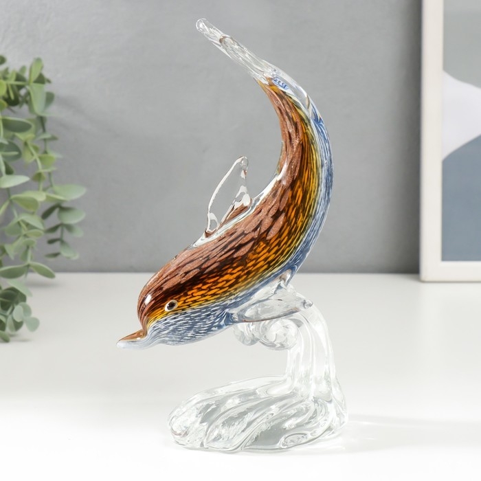 Сувенир стекло "Дельфин на волне" под муранское стекло МИКС 20,5х10 см