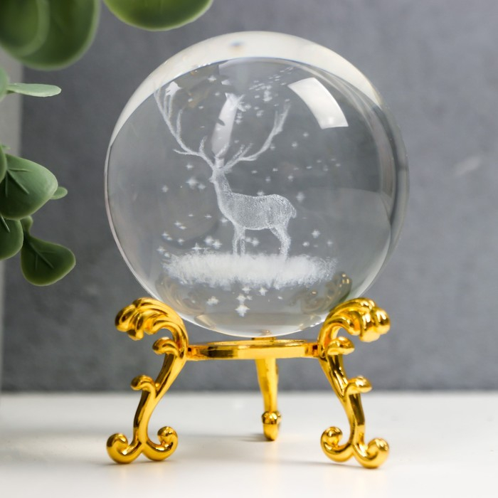 Сувенир стекло "Олень" d=6 см ажурная подставка 8,5х6х6 см
