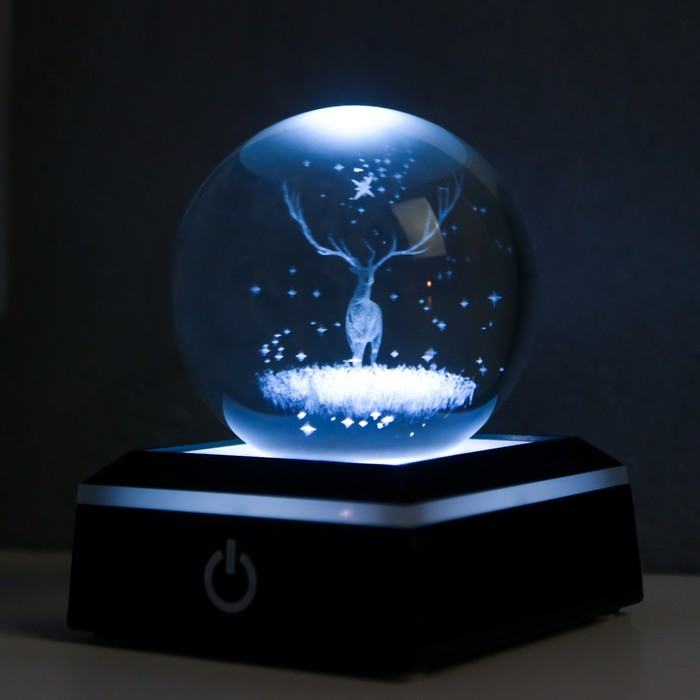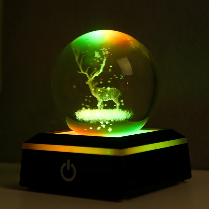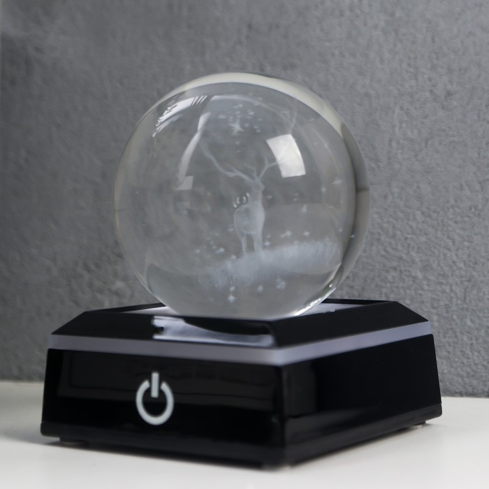 Сувенир стекло подсветка "Олень" d=6 см подставка LED от 3AAA, провод USB 9х7х7 см