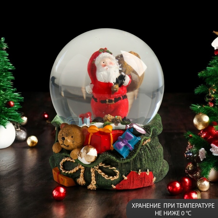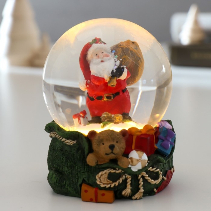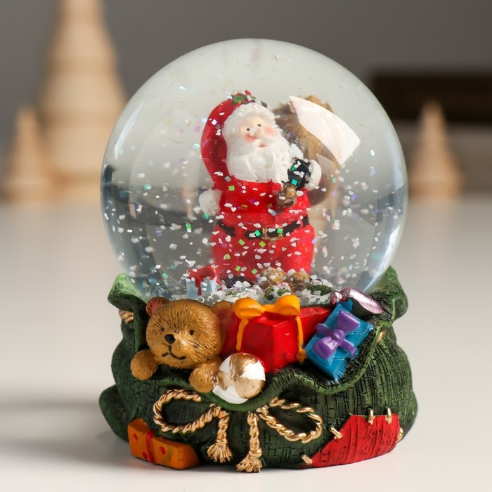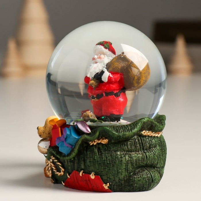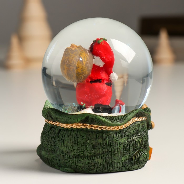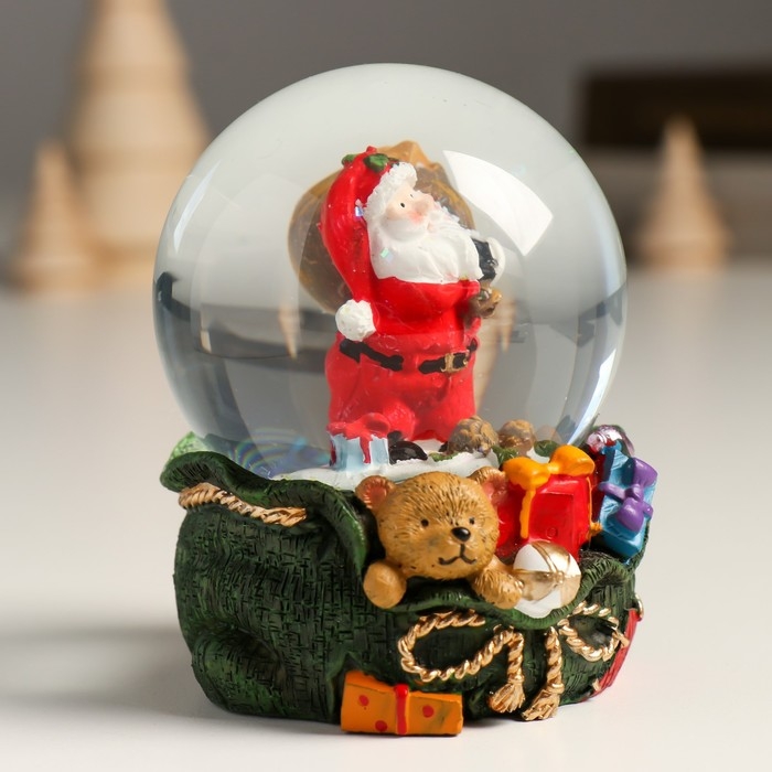 Сувенир свет полистоун водяной шар "Дед Мороз с мешком на плече" 7х8х9 см