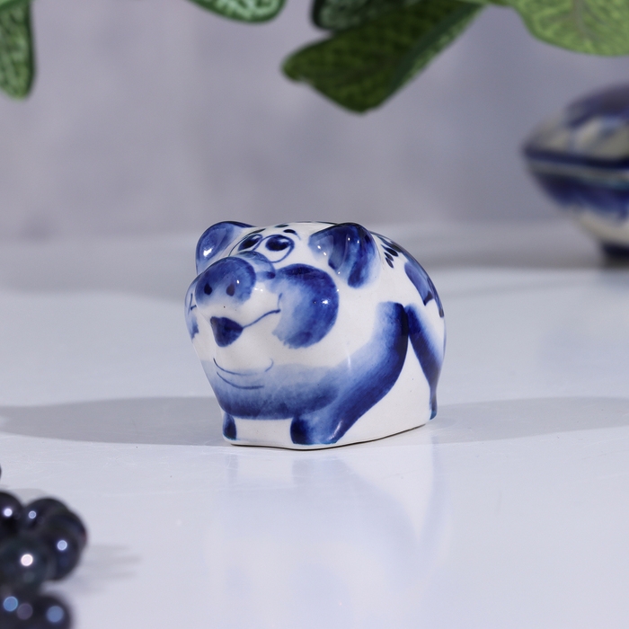 Сувенир Свинка круглая малая, гжель