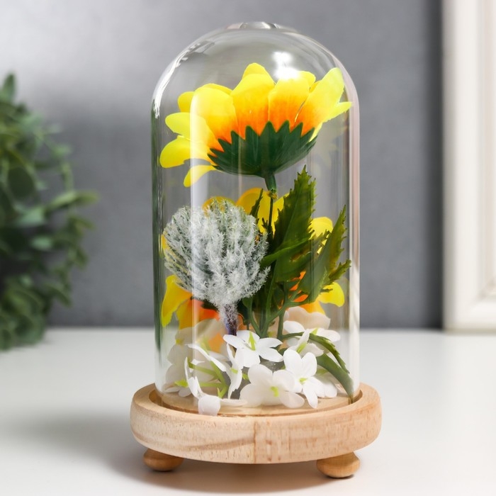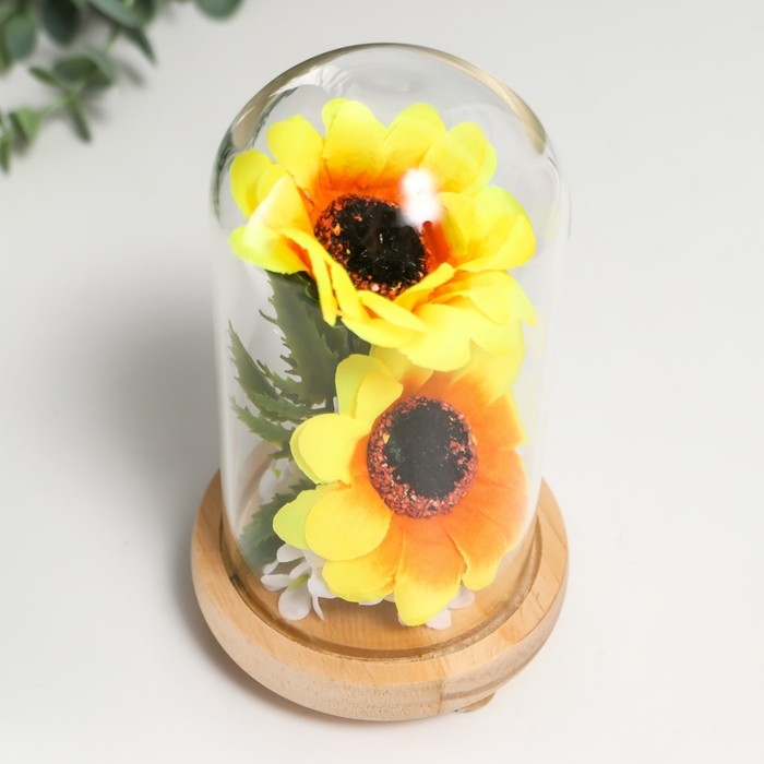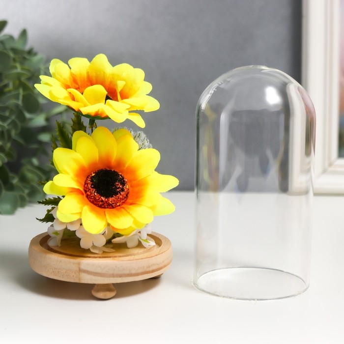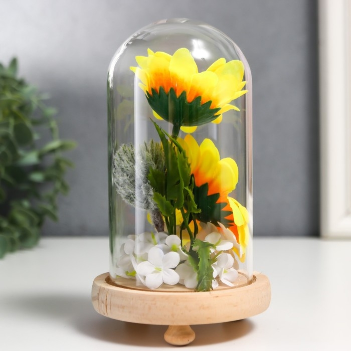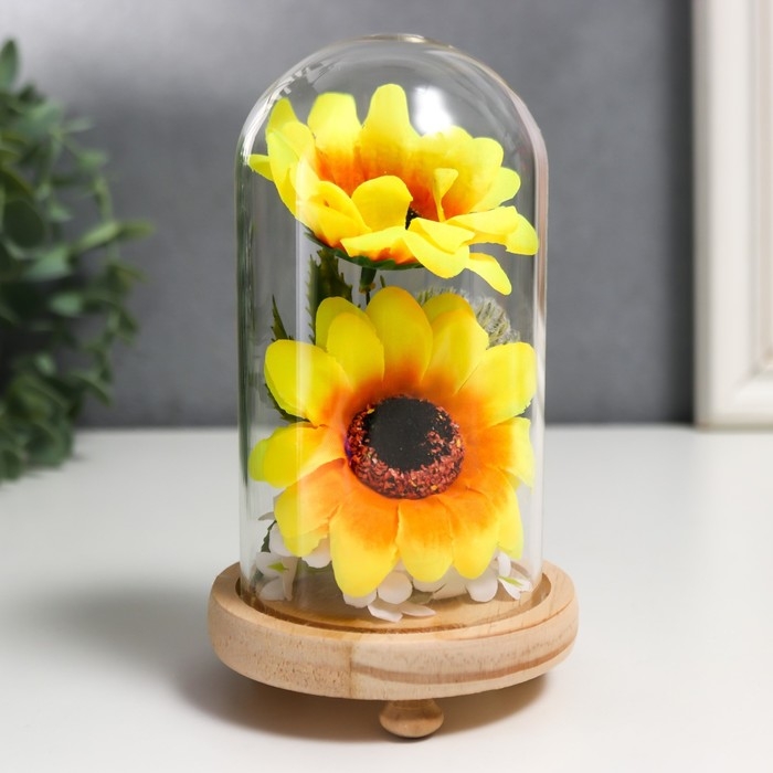 Сувенир текстиль, дерево, стекло "Подсолнухи в колбе" 14,5х8,5х8,5 см