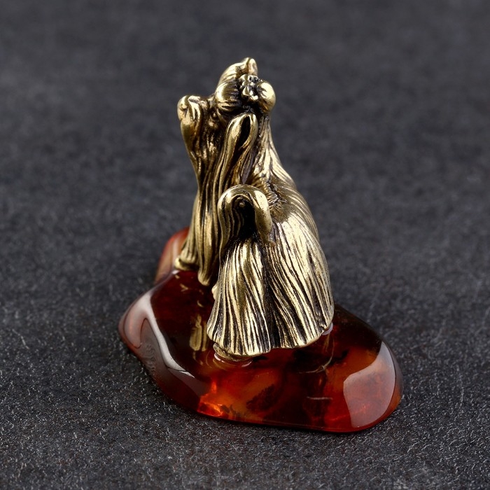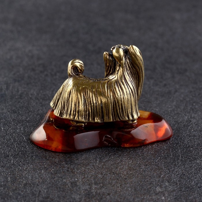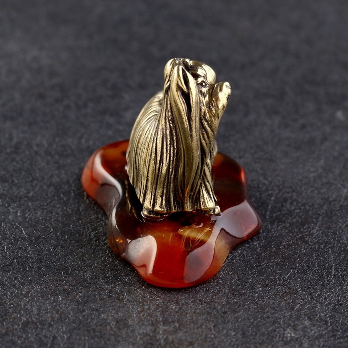 Сувенир "Йоркширкский терьер", латунь, янтарь