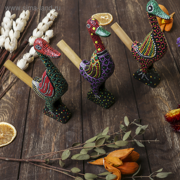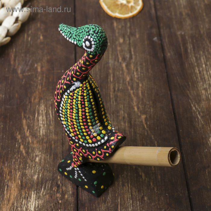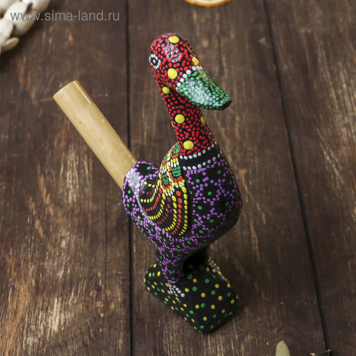 Сувенирный музыкальный инструмент "Свисток Утка" дерево, 2x10x17 см