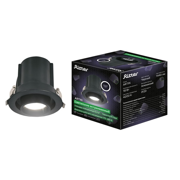 Св-к встр-й, ARTIN, выдвижн поворотн цилиндр 115х120мм LED 18Вт 1440Лм 4200К Al чёрн 59938 8