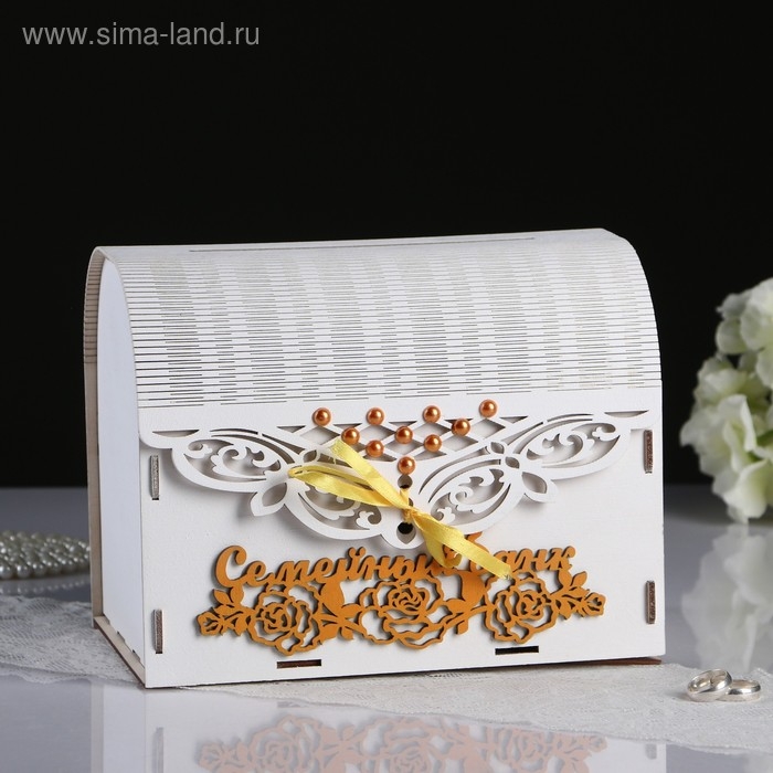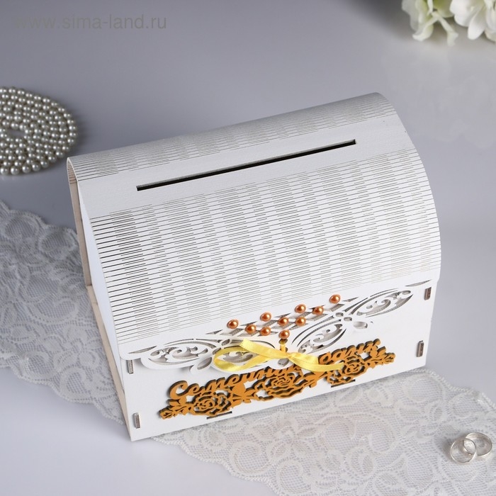 Свадебный банк 25,5х16х19 см, белый с золотым, не в сборе