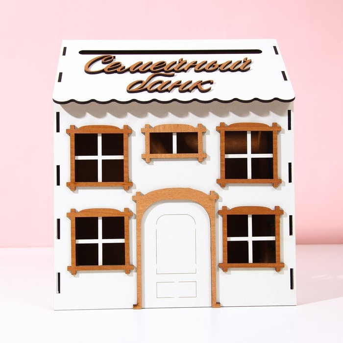 Свадебный или семейный банк из ХДФ 3 мм - казна для денежных подарков - станет незабываемым предметом декора на вашем торжестве. Красивый дом-шкатулка, куда гости могут складывать свои подарочные конверты. Семейный банк можно окрасить в цвет свадьбы аэрозольной краской, в баллончике. После церемонии этот сундучок можно использовать в интерьере, в быту, например, как шкатулка для хранения чего-либо. Прорезь для денег 20 х 1 см.
