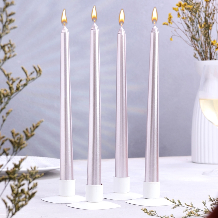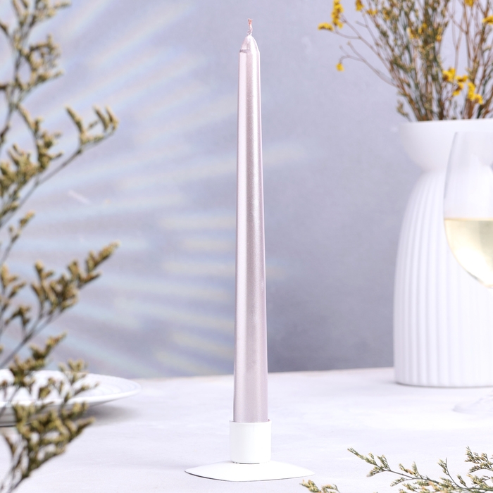 Свеча античная, 2,3х 25 см, 4 шт, лакированная, розовый металлик