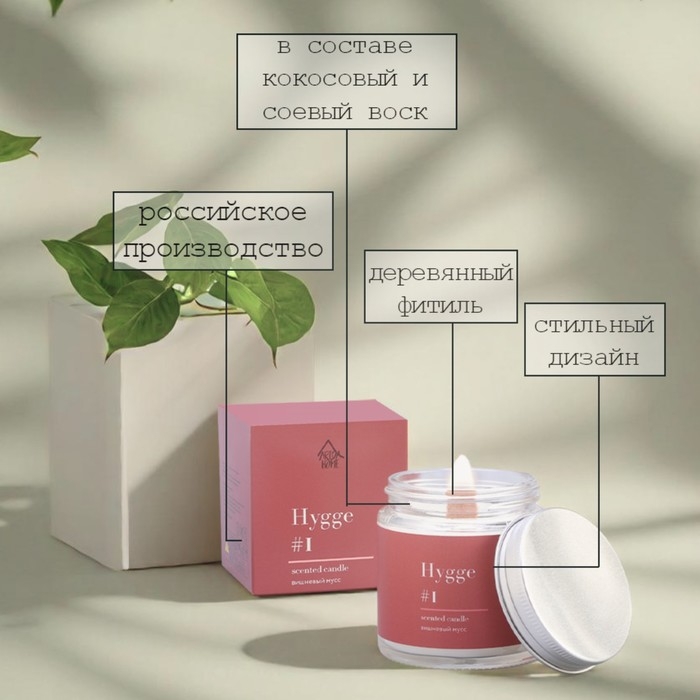 Свеча ароматическая "Hygge" #1 Вишнёвый мусс , соевый воск, в банке, 90 г