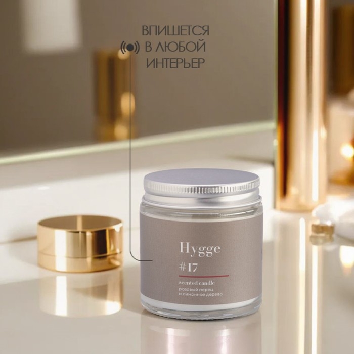 Свеча ароматическая "Hygge" #17 Розовый перец и лимонное дерево, соевый воск, в банке, 90 г