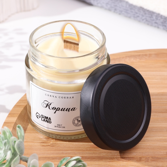 Свеча ароматическая из соевого воска в банке, 150 г, корица