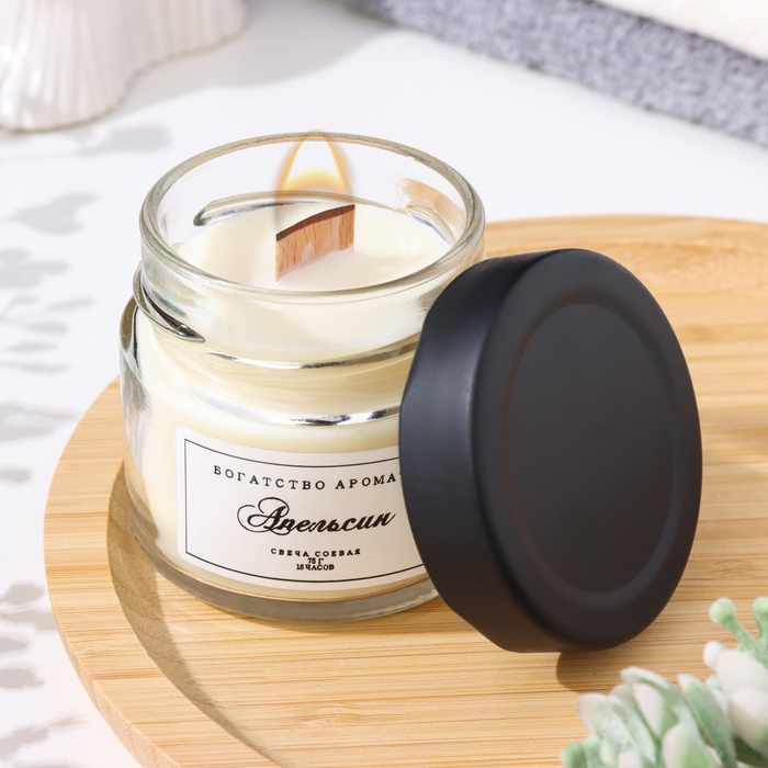 Свеча ароматическая из соевого воска в банке, 75 г, апельсин