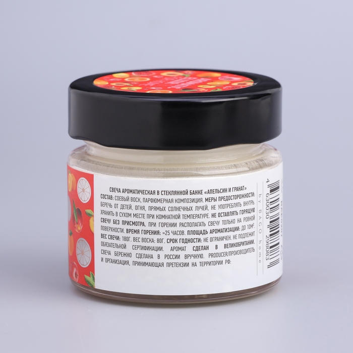 Свеча ароматическая в банке "Апельсин и гранат", совый воск, 80 г