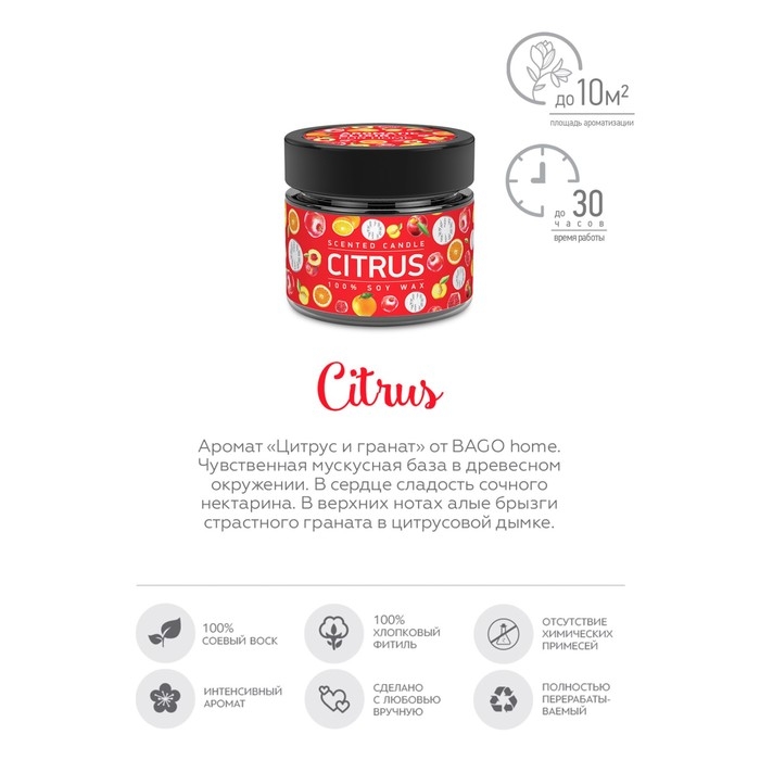Ароматическая свеча в насыщенном алом цвете в стекле рассчитана на 25 часов насыщенного и чистого горения. Площадь ароматизации: около 20 м2. Свеча создана из соевого воска высочайшего качества с естественными ароматами цветов и фруктов, безопасна для людей, животных и окружающей среды.