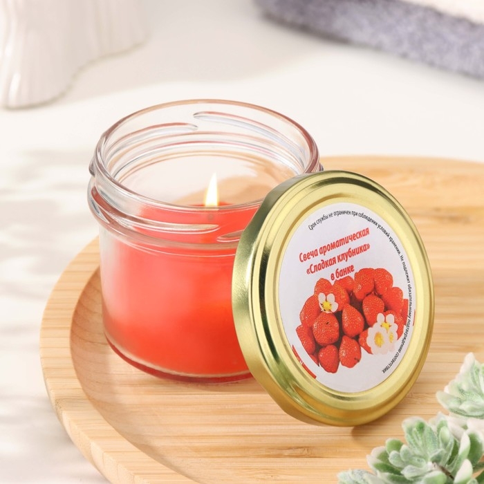 Свеча ароматическая в банке "Сладкая клубника" , 6х7 см, 120 г