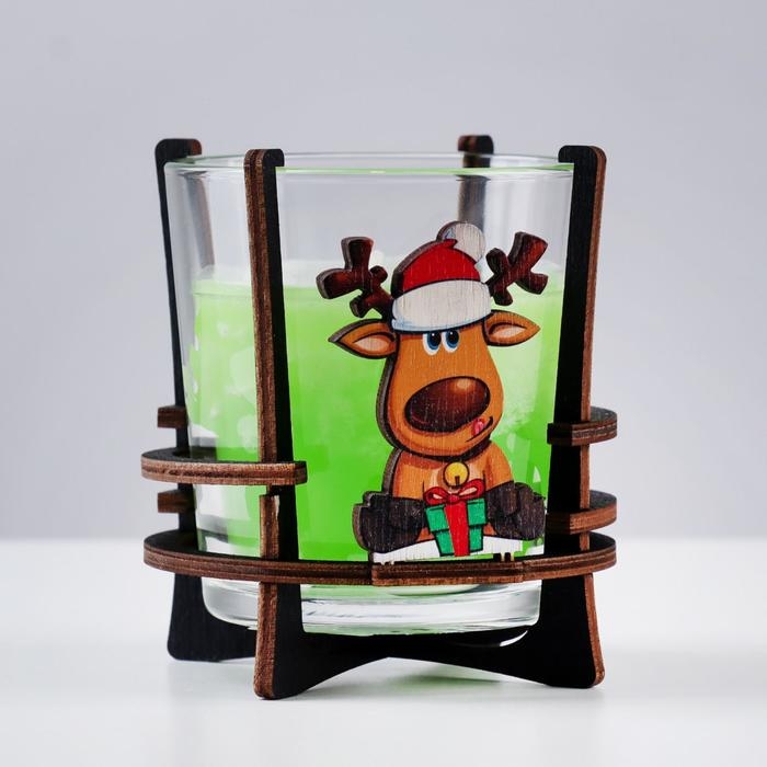 Свеча ароматическая в стакане на подставке "Новогодний олень", 10х9,5х9 см, яблоко