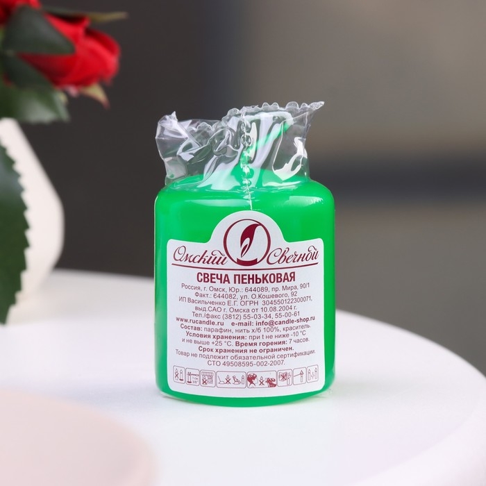 Свеча - цилиндр, 4х5см, 7 ч, 47 г, зеленая