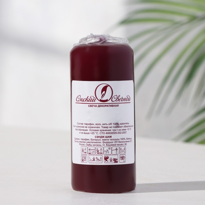 Свеча - цилиндр, 4х9 см, 11 ч, 90 г, бордовая
