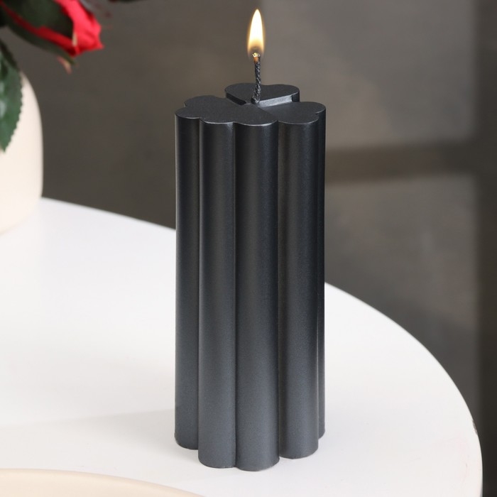 Свеча-цилиндр "Четырехлистник", 4,5х10,5 см, мокрый асфальт, 6 ч