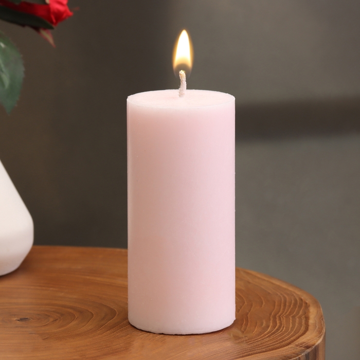 Свеча-цилиндр гладкая, 5х10 см, светло-розовая, 6 ч