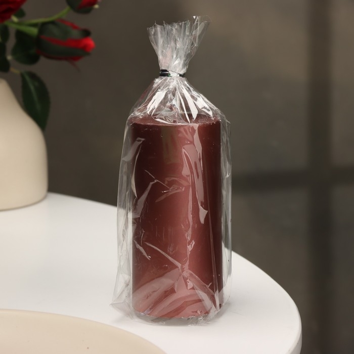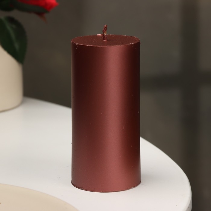 Свеча-цилиндр гладкая, 5х10 см, винная, металлик, 6 ч