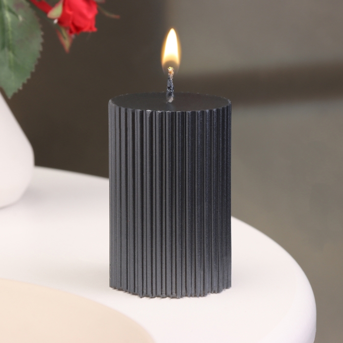 Свеча-цилиндр с гранями, 5х7,5 см, мокрый асфальт, 6 ч