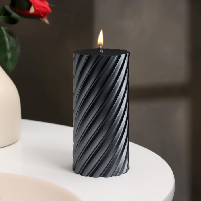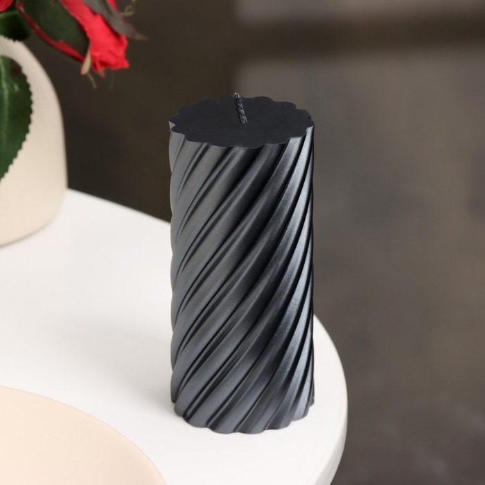 Свеча-цилиндр "Спираль", 5х10 см, мокрый асфальт, 6 ч