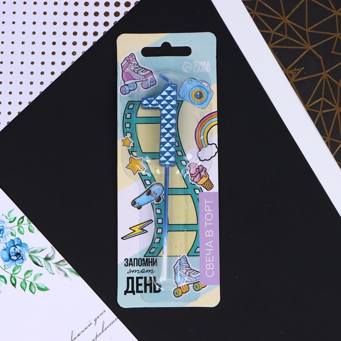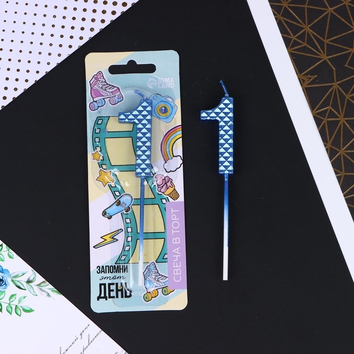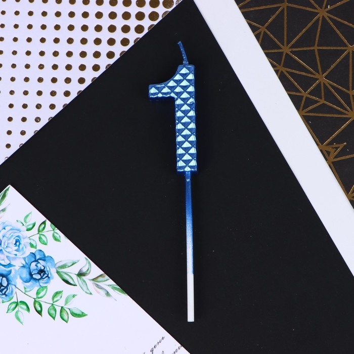 Свеча для торта, цифра «1», синяя, 2 х 13 см
