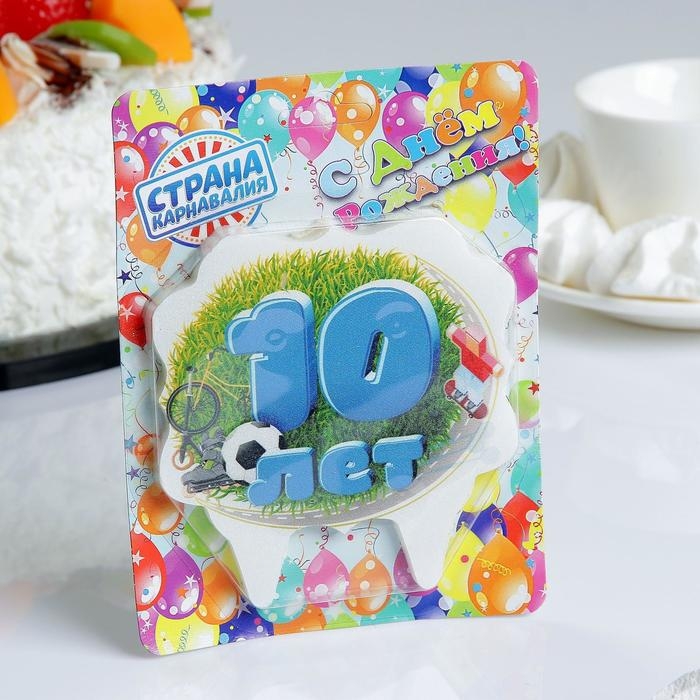 Свеча для торта цифра облако "Юбилейная" синяя "10", 6,5 см
