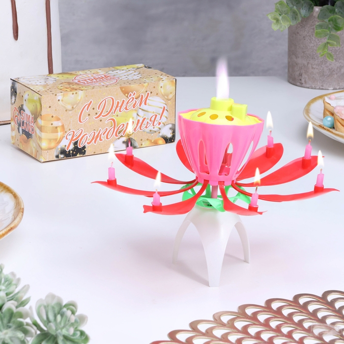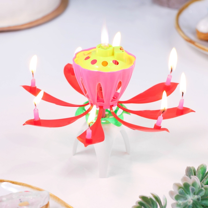 Свеча для торта музыкальная "Тюльпан", крутящаяся, розовая, 14,5×6 см