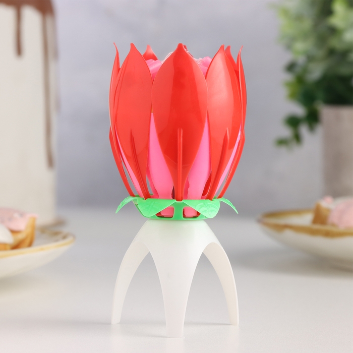 Свеча для торта музыкальная "Тюльпан", красная, 12×5 см