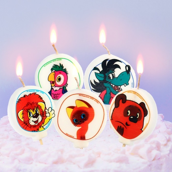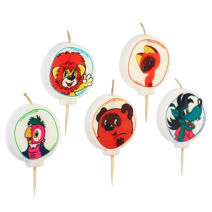 Свеча для торта "С Днем Рождения!", 5 штук, Союзмультфильм