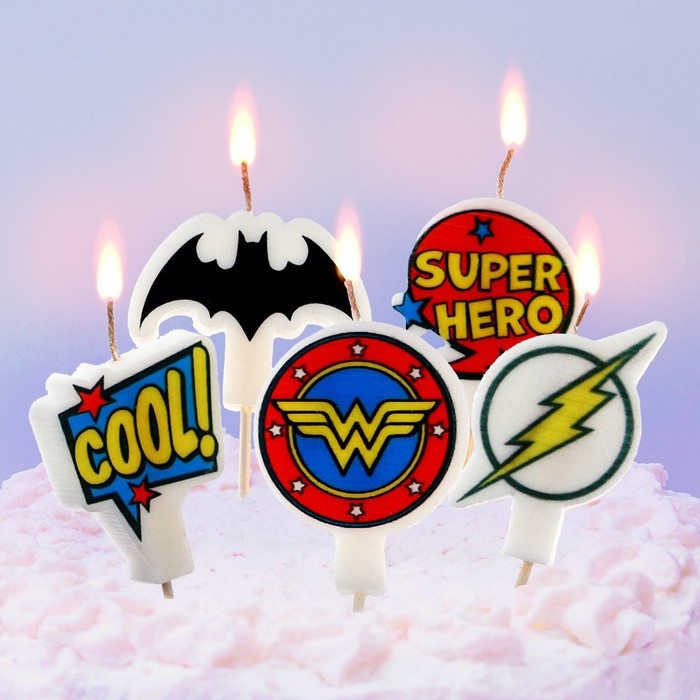 Свеча для торта "С Днем Рождения!", 5 штук, Супергерои