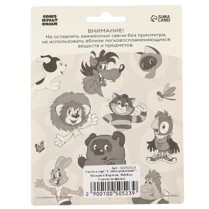 Свеча для торта "С Днем Рождения!", 8 х 8,8 см, Союзмультфильм