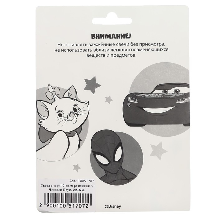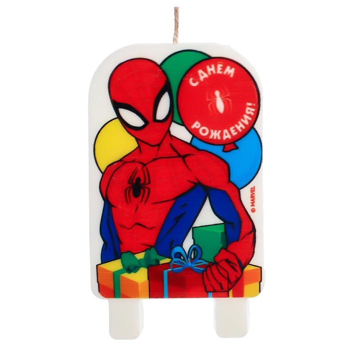 Свеча для торта "С Днем Рождения!", 9 х 5,3 см, Человек-паук