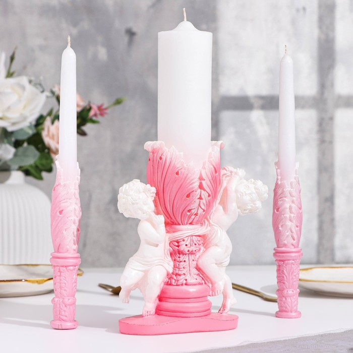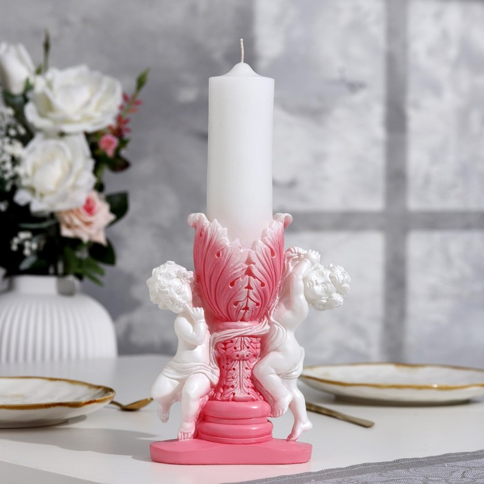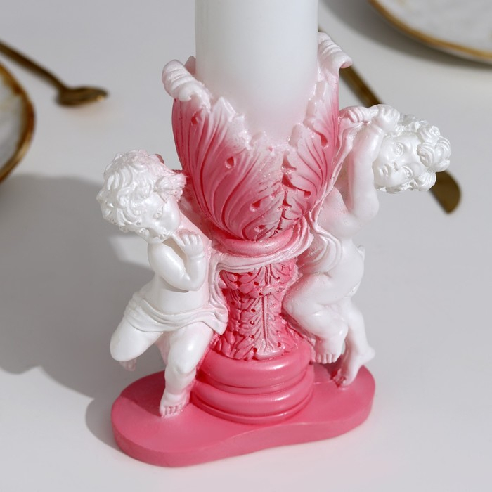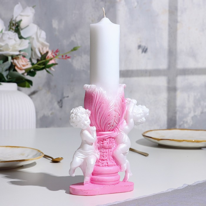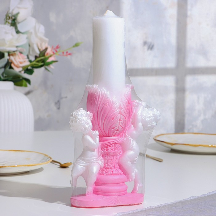 Свеча фигурная свадебная "Два ангела", 29,5х15 см, бело-розовая, 48 ч, домашний очаг