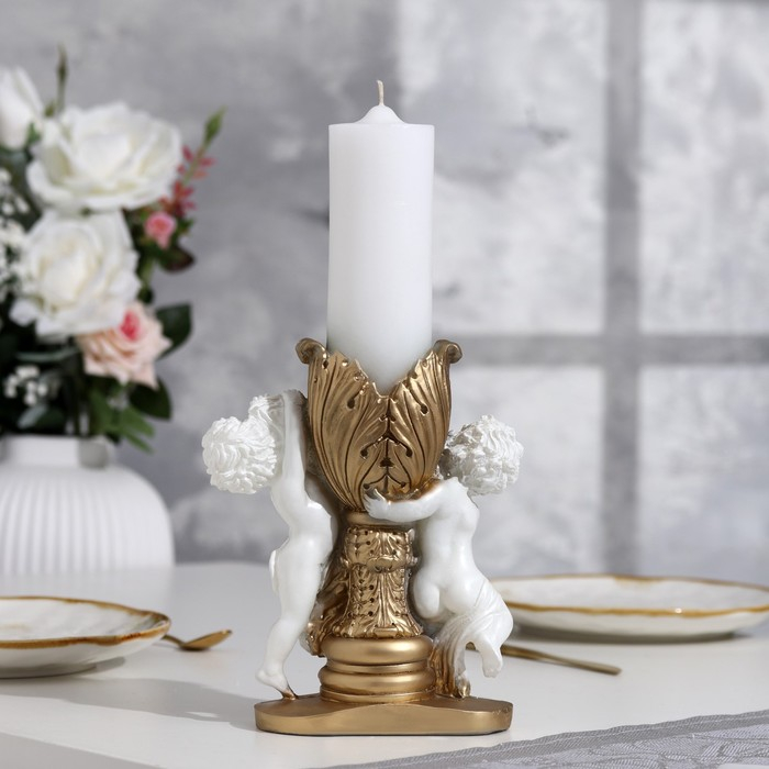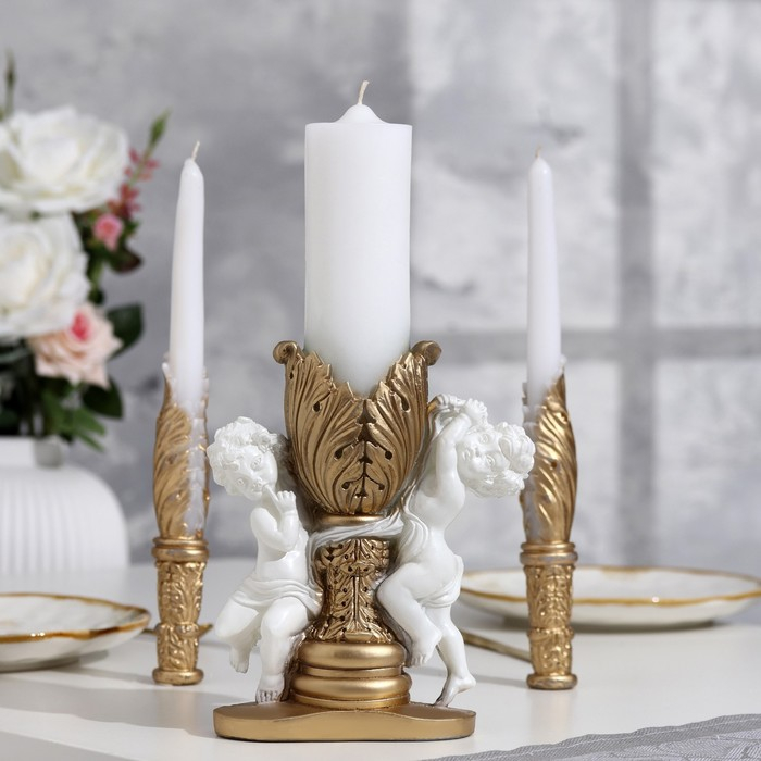 Свеча фигурная свадебная "Два ангела", 29,5х15 см, бело-золотая, 48 ч, домашний очаг