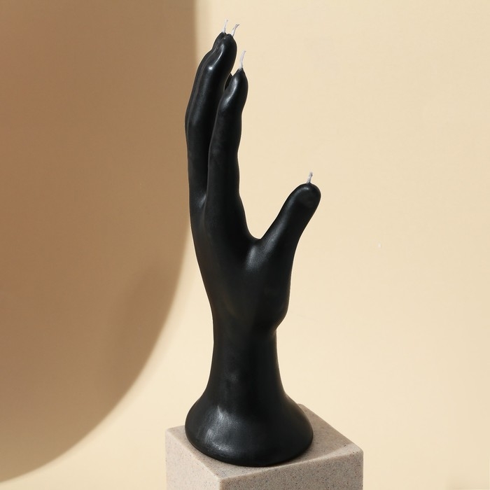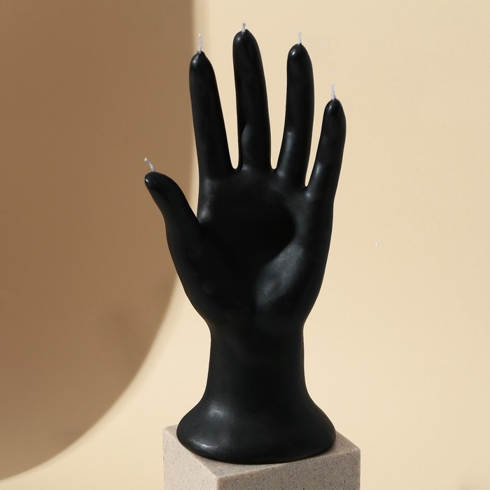 Черная, словно ночь, свеча в виде женской руки, с пятью горящими фитилями, создаст уютную и волшебную атмосферу в Вашем доме.