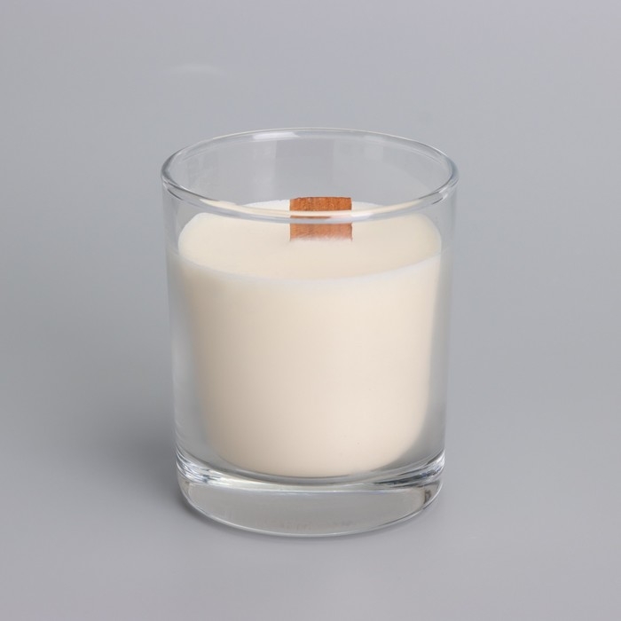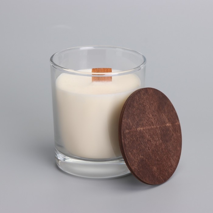 Свеча из соевого воска в стакане с деревянным фитилем и крышкой "Ароматная корица", 110 гр