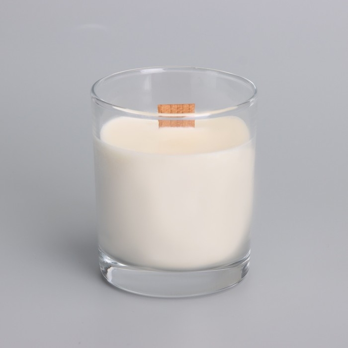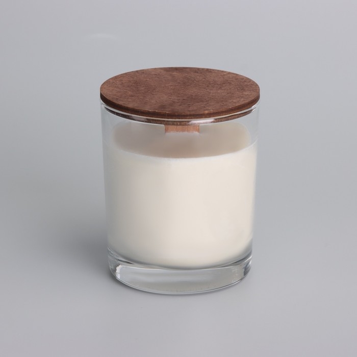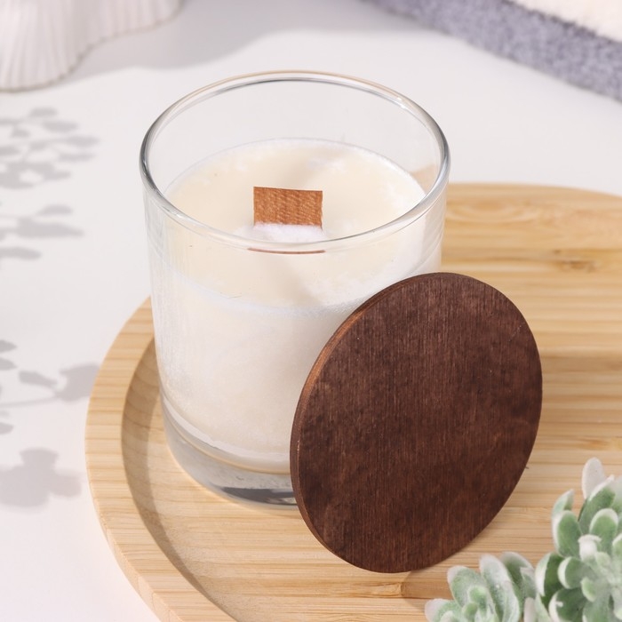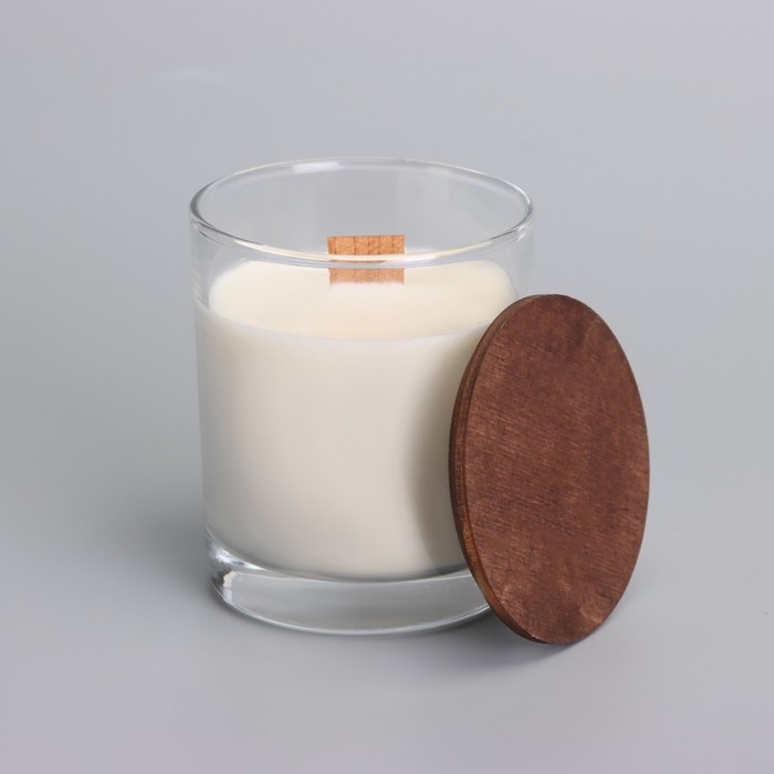 Свеча из соевого воска в стакане с деревянным фитилем и крышкой "Французская ваниль", 110 гр