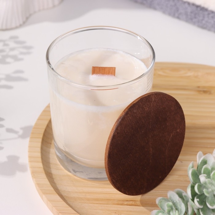 Свеча из соевого воска в стакане с деревянным фитилем и крышкой "Горная лаванда", 110 гр