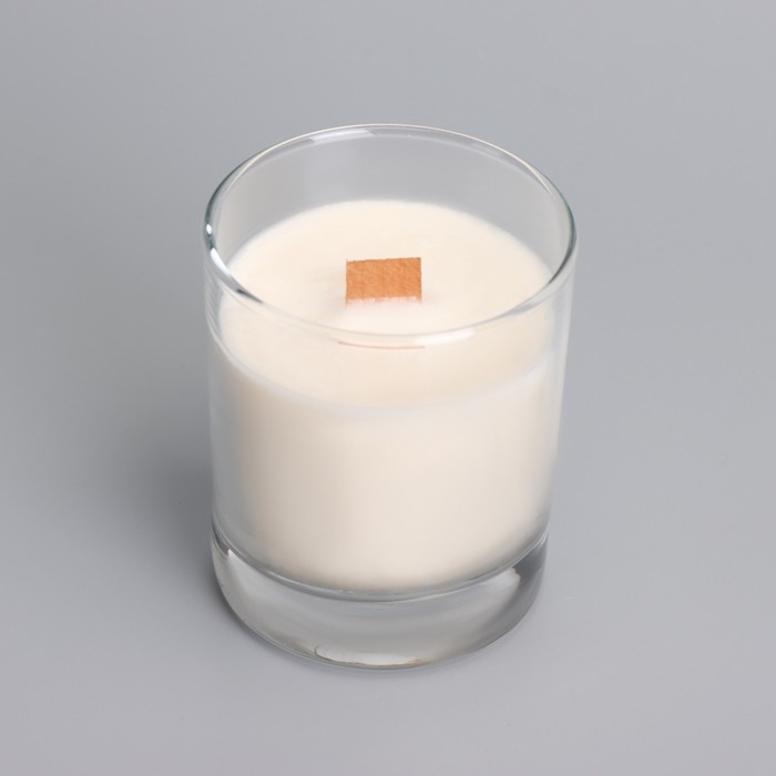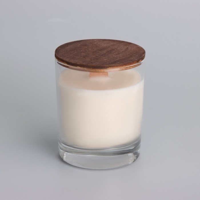Свеча из соевого воска в стакане с деревянным фитилем и крышкой "Имбирное печенье", 110 гр