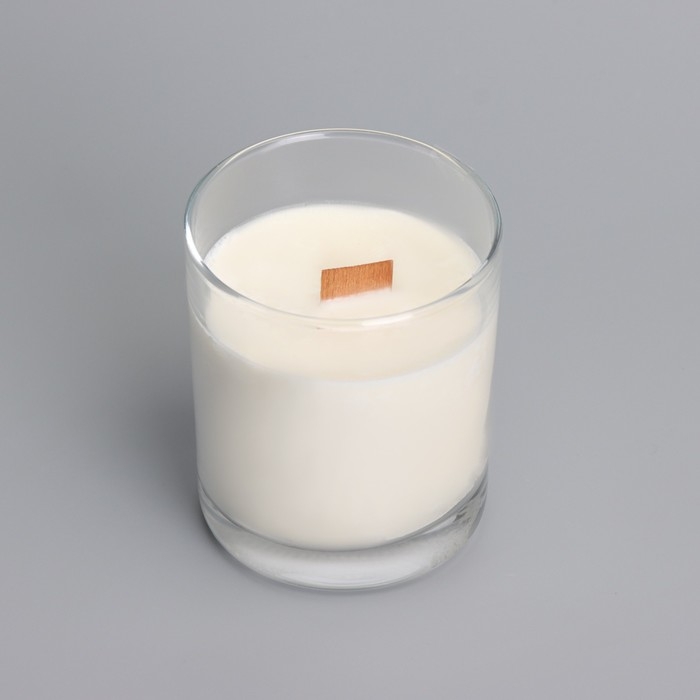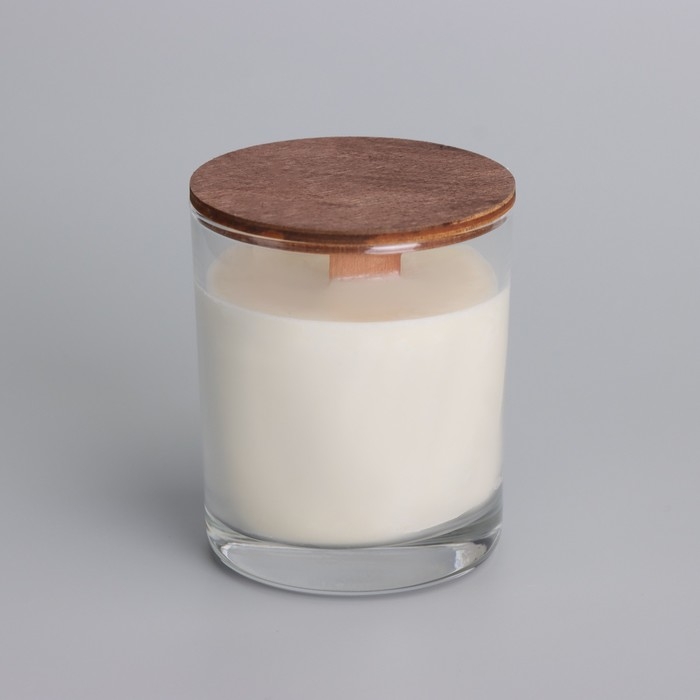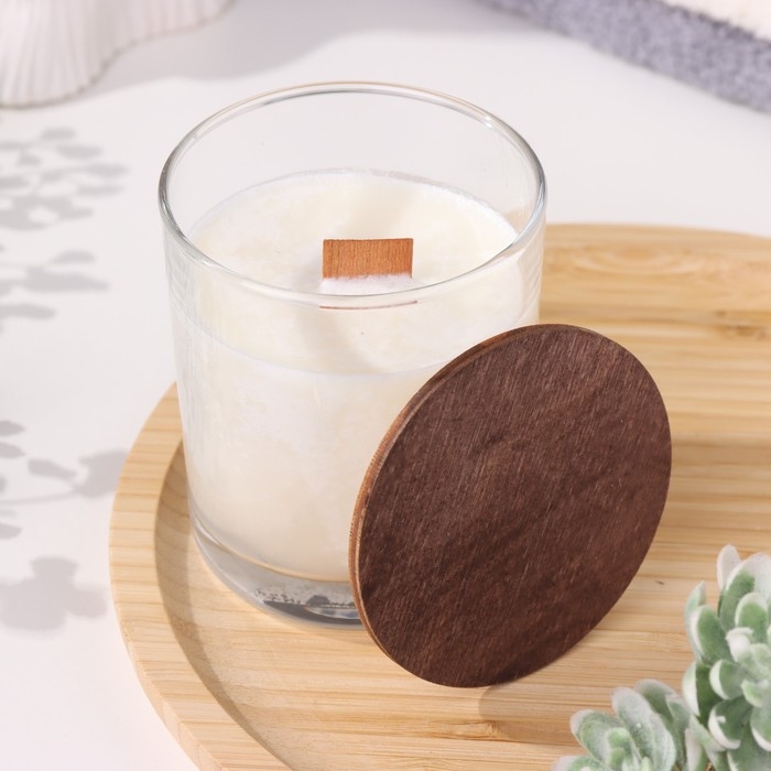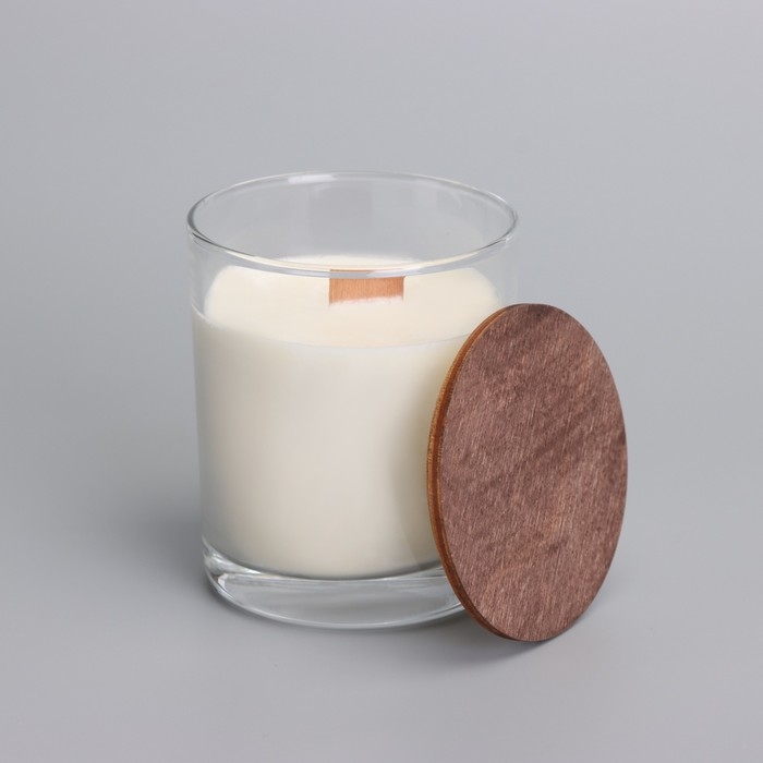 Свеча из соевого воска в стакане с деревянным фитилем и крышкой "Нежная орхидея", 110 гр